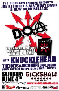 The gig features D.O.A. as well as Knucklehead, The Jolts & Rich Hope unplugged, and other special guests.