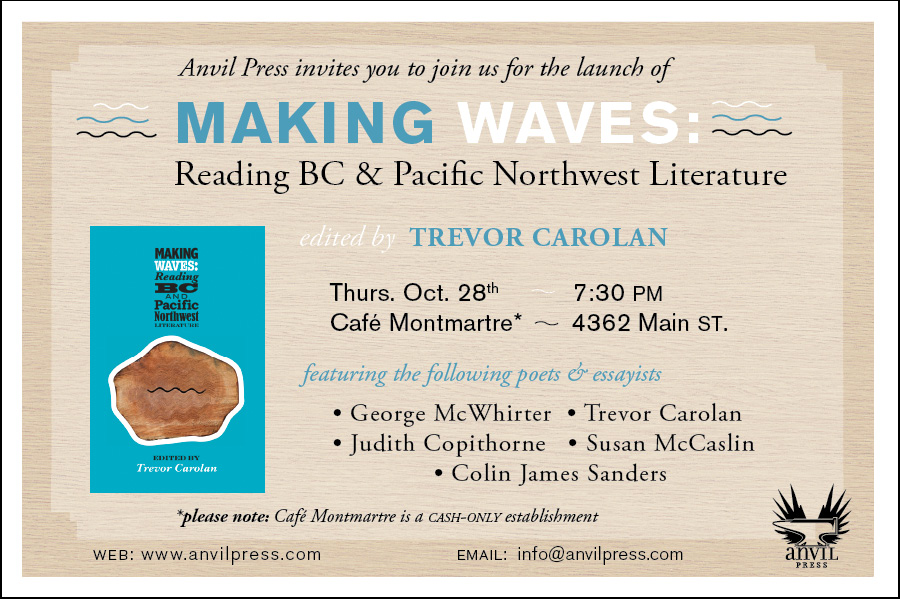 Anvil Press invites you to join them for the launch of Making Waves: Reading BC & Pacific Northwest Literature edited by Trevor Carolan
